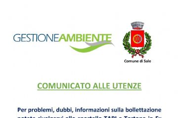 Il Comune di Sale in esecuzione della Determina n. 36/SA del 26/11/2019 provvede all’alienazione mediante asta pubblica della macchina operatrice...