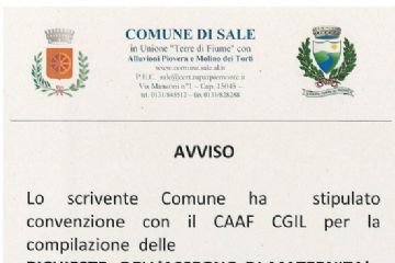 Il Comune di SALE ha stipulato le convenzioni con il CAAF-CGIL per la compilazione delle pratiche relative alle richieste dell'assegno di...