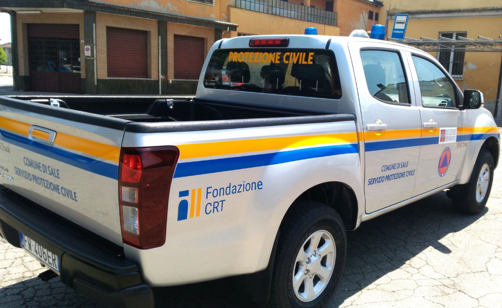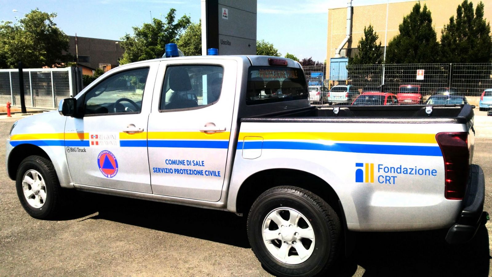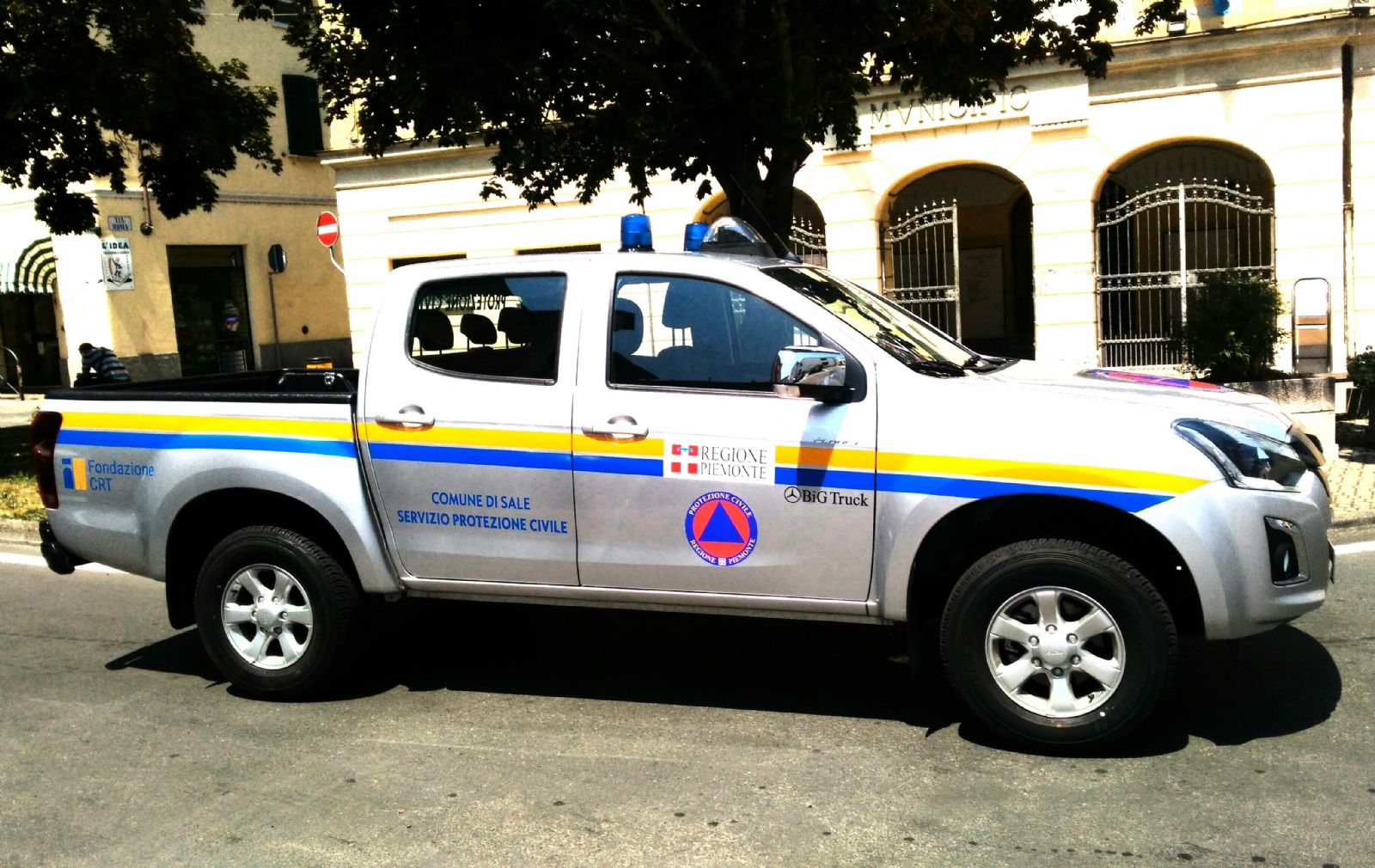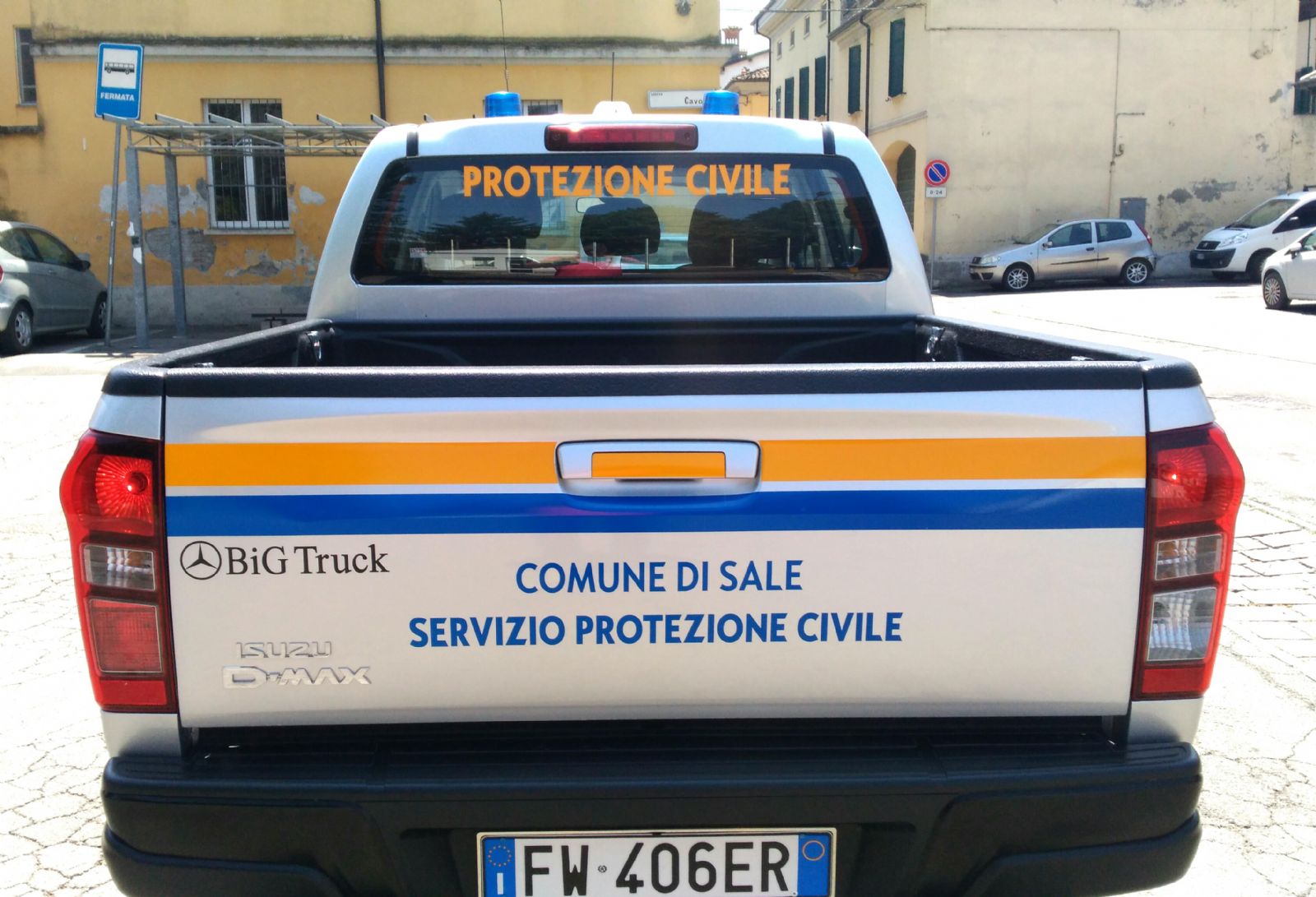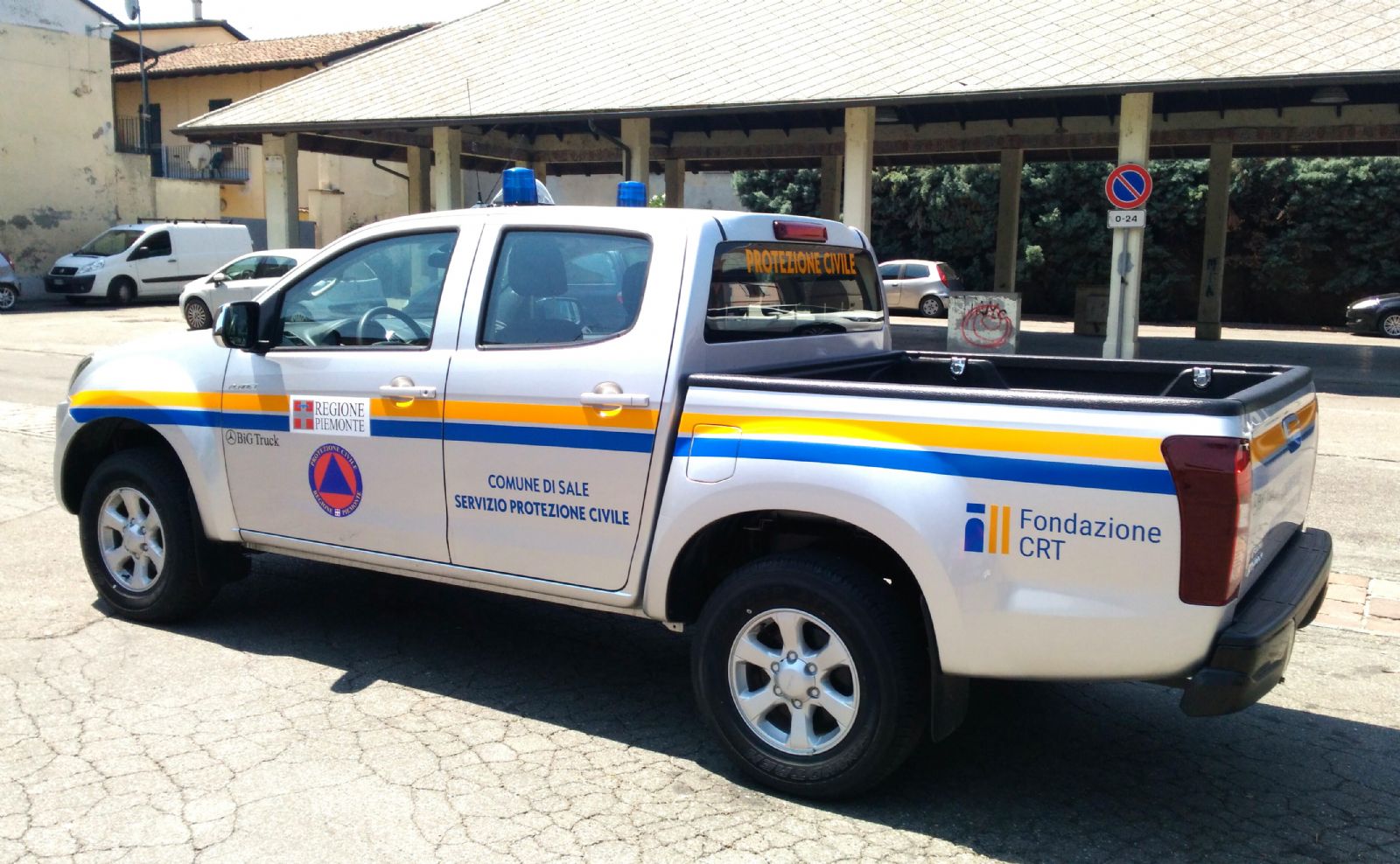 Questo è il nuovo mezzo speciale ISUZU D-Max Crew 4x4 Pick-Up con motore 1.9 Turbo Diesel 160 HP con allestimento speciale Protezione Civile Regione Piemonte, acquisito dal Comune di Sale per il proprio Gruppo Comunale di Volontari della Protezione Civile, per gli scopi ed i servizi a tutela della popolazione e dei cittadini previsti nel Piano Comunale di Emergenza.